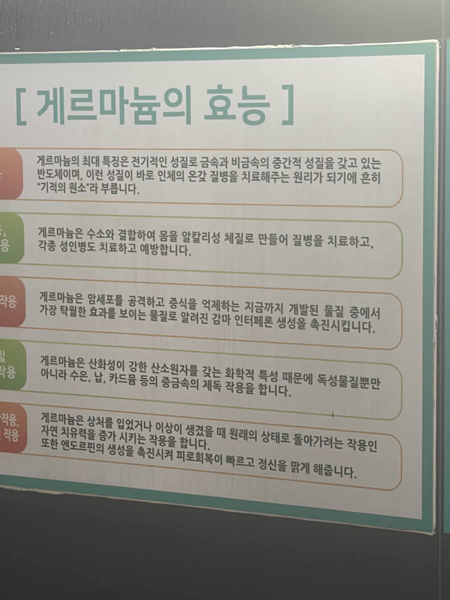 IMG_3588 12.03.2026 900 × 1200 Pilye Germanium hot spring, Republic of Korea Photo T.Glushko. Pilye Germanium hot spring. 2026. About Germanium qualities. Поделиться ссылкой: Нажмите, чтобы открыть на Facebook (Открывается в новом окне) Facebook Нажмите, чтобы поделиться в Telegram (Открывается в новом окне) Telegram Нажмите, чтобы поделиться в WhatsApp (Открывается в новом окне) WhatsApp